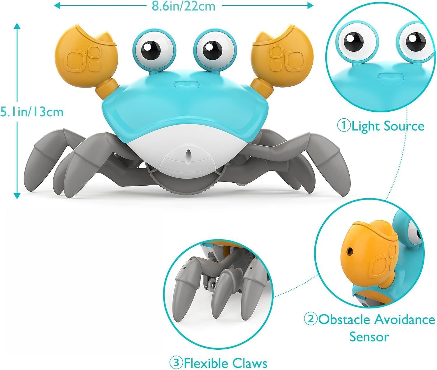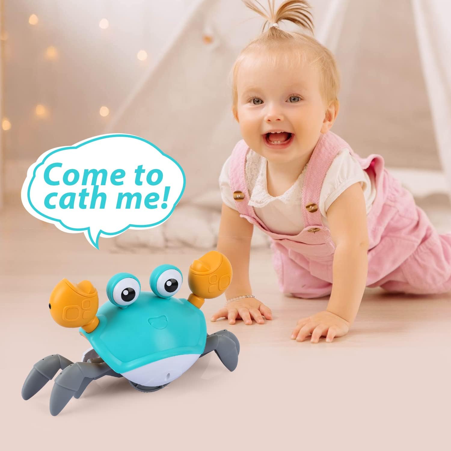 The standout feature of the Crawling Crab Baby Toy is its intelligent sensor system. Located on both claws, these sensors detect walls, furniture, or feet, causing the crab to instantly reverse or move in the opposite direction. This “escaping” motion creates a thrilling game of chase that keeps babies engaged far longer than stationary toys. It encourages infants to lift their heads and toddlers to move their limbs, making it a powerful motivator for physical milestones.