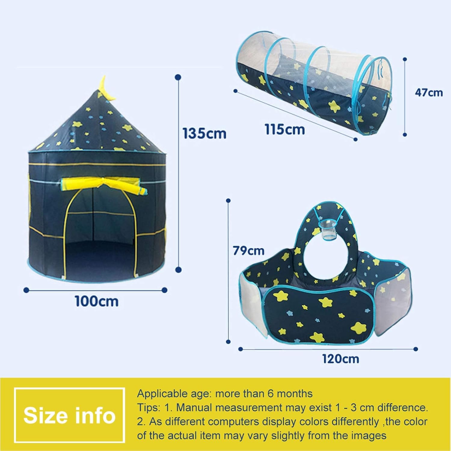 🌟 Get the exciting Toytanic.pk playset featuring a castle tent, pop-up tunnel, and ball pit pool (balls not included) for kids 6 months and up. Adult supervision is required.